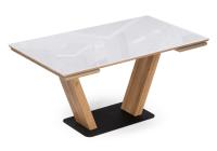 Стол стеклянный Конор 140(200)х80х73 белый / дуб вотан